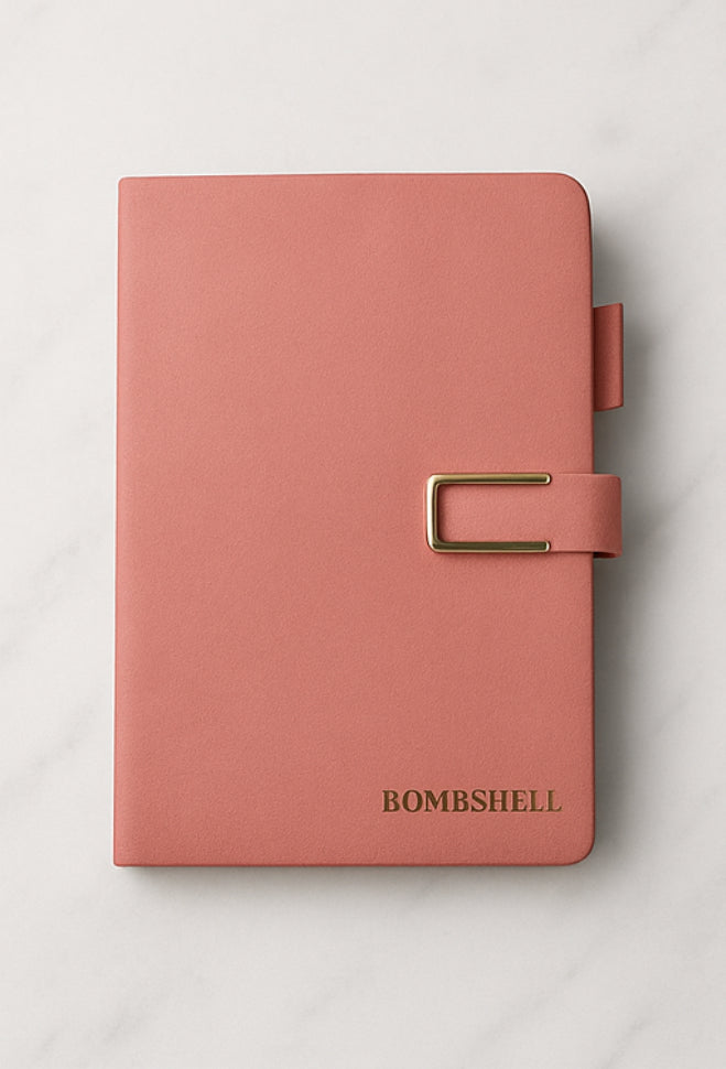 • The Bombshell Journal – Leatherette Cover guided journal for intentions, scripting, and personal breakthroughs.